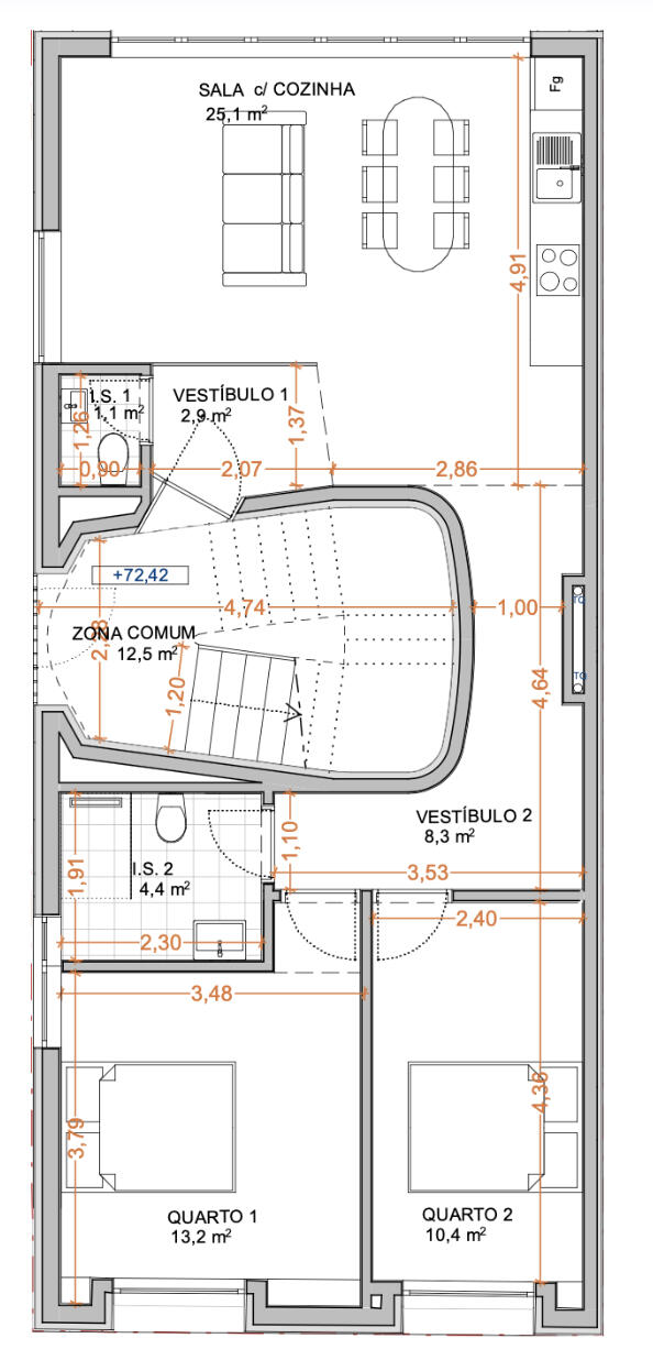 Um projeto imobiliário pensado para as dinâmicas atuais do mercado, que alia funcionalidade, dimensões generosas e elevado potencial de rentabilidade. Composto por dois edifícios de pequena escala, integra apartamentos T0 e T2, adequados tanto para investimento em arrendamento como para jovens profissionais que privilegiam soluções práticas.